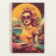 The notebook features an AI image of a vintage/retro inspired woman, with the backdrop of the sun and a Los Angeles/California vibe, with an old fashioned vintage car and palm trees and a beach scene.