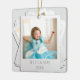 Choose your favourite photo to add to this retro instant film style Christmas tree hanging ornament. You can add text or remove to have none.