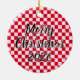 Retro Jingle And Mingle Christmas Checkerboard Red Ceramic Ornament