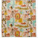 Add a wild touch to your bathroom with this patterned shower curtain. This retro style design features cute illustrations of an assortment of jungle animals birds, lions, giraffes, zebra, elephants, crocodiles, snakes, monkeys and more in shades of aqua blue, golden yellow, orange, brown and peach are set against a cream coloured background.