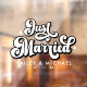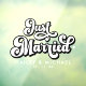 Retro black and white just married sticker for a newlywed couple. Place on the back window of your car after your wedding.