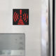 Striking retro-futuristic hazard icon with pulsing red lines and a distressed warning, old-school terminal screen vibes.