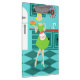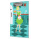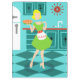 With this Retro Kitchen Clip Board, you can have your pie and eat it, too. This kitschy, minimalist art drawing features a perfect 1950's housewife, in her mid century modern kitchen. The beautiful baker is wearing a flouncy, green dress and a white apron with red detailing. Not a hair on her blonde head is out of place. In one hand, she is holding the fruit of her labour--a gorgeous, lattice topped, fruit pie. One glance and you'll know that her flaky pie crusts are second to none. She is standing on an aqua and teal chequerboard floor, which is undoubtedly clean enough to eat off of. Against an aqua wall, we see teal cabinetry with aqua trim work, a red countertop, red drawer pulls, and black starburst accents. A red, starburst clock is hanging on the wall. To the side, there is a state of the art, white refrigerator with silver handles. At least, the fridge was state of the art in 1950's. Now, it's just plain dreamy! Whether you're Suzie Homemaker or simply have an affinity for all things vintage, you're sure to love this scrumptious slice of Americana.