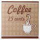 This tile resembles a retro coffee sign. Use this vintage style coffee tile as a kitchen trivet, art, decor, home decor, a gift, etc.... Use this tile in a kitchen, bakery, coffee shop, etc...The design is from original art.