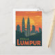 Celebrate the vibrant energy of Malaysia's capital with this retro-style poster. The design features a stunning, vintage-look illustration of the iconic Petronas Towers standing tall against a glowing sunset, surrounded by the lush urban landscape. This poster is perfect for travel enthusiasts, fans of retro design, or anyone who wants a stylish and unique piece of wall art to remember their time in Kuala Lumpur.