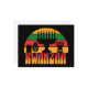 Retro 60-70 feel Kwanzaa with a Kinara, unity cup, corn, and gift in gold, green, red, and black.