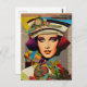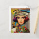 Retro Lady Colourful Mixed Media Collage Abstract Postcard