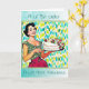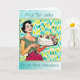 Say happy Birthday in this sweet way with this retro vintage card, woman holding a birthday cake.