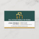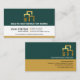A retro column design with green, white and brown colours. You have a gold building re-bar logo at the top that you can use alongside the business name. In the corresponding white layer are your prestigious name and job title with the contact details in their respective buttons. A slogan to publicise your services is at the base of the card. Change the caption remarks to suit your needs.