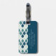 Retro Leaf Pattern Blue Green Monogram Luggage Tag