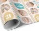 Celebrate a special birthday with this stylish custom gift wrap! A retro leaf design elegantly displays four of your favourite photos. Personalise the template with the recipient's name and birthday age. This seamless pattern wrapping paper is perfect for family and friends! Printed colours: peach, blue-green, blue, white and gold.