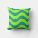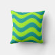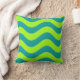 Retro Lime Green and Teal Wavy Psychedelic Pattern Cushion