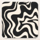 Retro Liquid Swirl Abstract Pattern Black Cream Square Paper Coaster