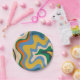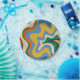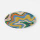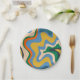 Retro Liquid Swirl Abstract Pattern Blue Mustard Paper Plate