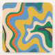 Retro Liquid Swirl Abstract Pattern Blue Mustard Square Paper Coaster
