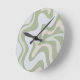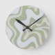 Retro Liquid Swirl Abstract Pattern in Sage Green Round Clock