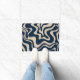 Retro Liquid Swirl Abstract Pattern Navy Blue Doormat