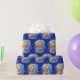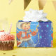 Little cowboy with a rope the has Merry Christmas text inside the rope. It has a blue background with snowflakes.