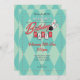 Bowling Birthday Party Invitation features features the typography "Birthday Party" in a retro, modern 50's style logo, with illustrated bowling ball and pins. Incorporating elements of blue, red, white, and grey, dots, and a diamond patterned background. Includes template for personal customisation.
