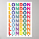 Retro London England poster with colourful text.