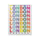 Retro London England poster with colourful text.