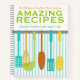 Fun retro/vintage look kitchen utensils on the wall on this personalised recipe notebook - customise the text to make this awesome recipe book entirely unique!