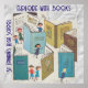 Retro EXPLORE WITH BOOKS images on paper background. Editable text. Great for a school or college library.