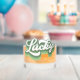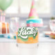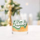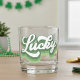 This cool whiskey glass features retro style script that says "Lucky" in a distressed green and white font. Perfect for celebrating St. Patrick's Day!