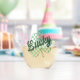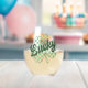 This fun stemless wine glass features a green and white checked shamrock with retro style lettering that says "Lucky" in a distressed green font. Perfect for St. Patrick's Day!