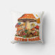 This image depicts a whimsical scene of various mushrooms in a retro style. The prominent mushroom, with its orange cap and white spots, dominates the centre, surrounded by smaller mushrooms of different colours and shapes. The mushrooms are nestled amidst green foliage, with flowers adding a touch of vibrancy to the scene. The word "RETRO MAGIC" is prominently displayed at the bottom, adding a touch of nostalgia and whimsy to the image. The overall effect is playful and inviting, evoking a sense of wonder and enchantment.