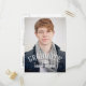 Modern Graduation Party Invitation Postcard for male graduates with a simple design with retro typography white text overlay. Elke Clarke © for MonogramGallery. Customise with your grad information by selecting "customise it" or use the template menu prompts. Exchange the sample photo for your own.