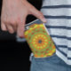 This retro mandala design features orange, blue, and yellow. Funky and vibrant visuals for anyone who likes bright colours!