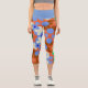 Retro Mandala Flower Orange Blue and Yellow Capri Leggings