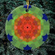 This retro mandala design features orange, green, and blue in a flower pattern. Funky and vibrant visuals for anyone who likes bright colours!