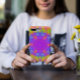 This retro mandala design features pink, green, and blue. Funky and vibrant visuals for anyone who likes bright colours!