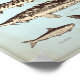 retro ocean poster with different fishes such as salmon, cat shark, trout, sturgeon, perch, turbot, herring, gurnard and grouper on a stained paper background. Marine design in the style of vintage encyclopedias - great for a beach home or kitchen.