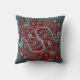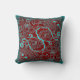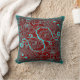 This is a vintage maroon and teal paisley pattern. The maroon background has a variation in shade to give a retro slightly grungy effect. The square pillow would make an elegant accent on a traditional couch or armchair.