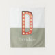 Modern design that's a little retro / vintage too, featuring large retro style theatre marquee bulb letter D, with customisable text below