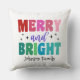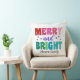 Retro Merry and Bright Customizable Name Christmas Cushion