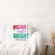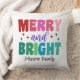 Spread holiday cheer with this colorful pillow featuring retro-style typography that boldly proclaims, “Merry and Bright,” in vibrant purple, pink, green, and blue hues. Simple accent stars add a touch of magic to the design, and the best part is that you can customize the family name to make this design uniquely your own. Step into the season with style, warmth, and a personalized touch.