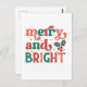 Retro Merry & Bright Christmas Typography Postcard