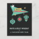 A colorful retro Merry Christmas billboard design with three Christmas ornaments hanging from the sign. Add your personal holiday greetings to the back of the postcard and send it to your friends and family.