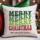Spread holiday cheer with this colourful pillow that features festive, retro-style typography that proclaims, “Merry, Merry, Merry Christmas,” in vibrant shades of red, green, and yellow. Simple accent stars add a touch of magic to the design, and the best part is that you can customise the family name to make this holiday pillow uniquely your own. Decorate your home for the season with style, warmth, and a personalised touch.