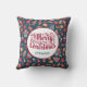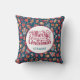 This fabulous Christmas folk art 16" x 16" blue pillow with a pattern of santas, gingerbread men, Christmas trees, ornaments, angels and presents that says "Merry Christmas" and has your last name would look awesome on your couch, bed or chairs! It's so festive and will go with any Christmas decor - it's rustic yet retro and modern yet traditional! It'll look fantastic and add that little extra Christmas touch to your home!