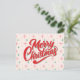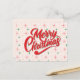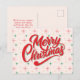 This retro-inspired postcard is a simple Merry Christmas wish. The front features whimsical typography in red, with the text "Merry Christmas". Behind the text features gold, red, green, and white stars on a cream-colored background. The back of the postcard is cream-colored. There is also a template for you to enter your message to recipients. There is sample text that will need to be personalized prior to ordering.
