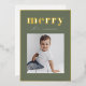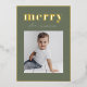 Retro Merry Typography Taupe Green Photo Christmas Foil Holiday Card