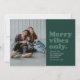 Merry vibes only this holiday season! Send a fun retro-style holiday card with this one-photo green design. The throwback green type reads "merry vibes only" and it also has room for a custom message, name and year. The coordinating back is green with a distressed texture to complete the vintage look. Perfect to send to friends and family in a year fraught with covid, an election and more not-so-merry events.