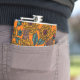 The flask itself is fine. It’s a cheap flask, obviously bought in bulk, however am prepared to overlook that. Given that it is a personalized item, I would have liked to have seen gift boxing instead of the generic packaging. Terrible printing, and/or quality. It’s a cheap, tacky vinyl. It is not cut straight and is also applied in a way that it is overhanging the bottom, causing the glue to catch on items and it will eventually roll and tear, damaging the wrap.