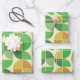 Retro Mid Century Geometric Floral Green Wrapping Paper Sheet
