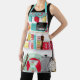 This cloth apron has an illustration of kitchen shelves done in a retro mid century modern style. This design is inspired by all the things found in built in or hutch shelves. From jams and jellies to canned vegetables, spice tins, retro clock radio and cookbooks. You can customise be adding your name anywhere on the apron you want.